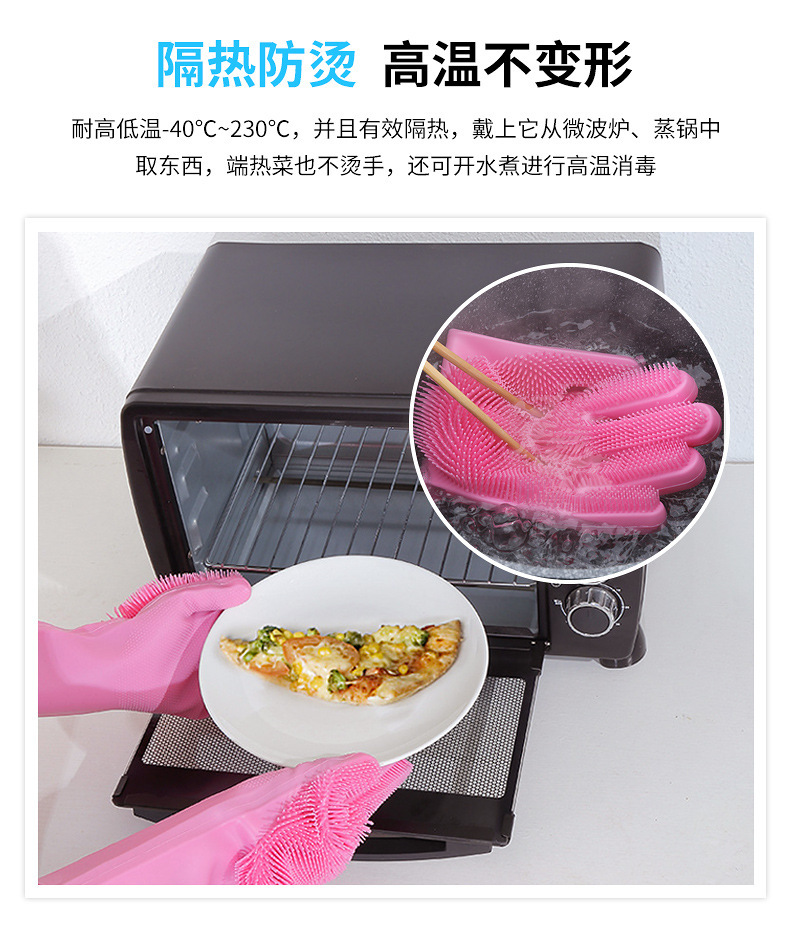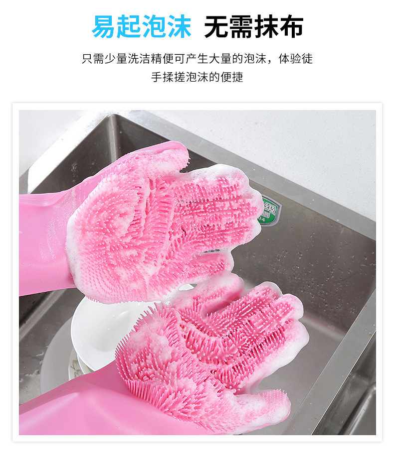3.手套易清洗徹底不滋生細菌,這一點是很多清潔用品都做不到的,油脂、醬油、醋、污垢等等都無法有力附著在硅膠表面,而其他比如鋼絲球、海綿塊、洗碗布等等材質(zhì),都做不到,使用硅膠洗碗手套實在是讓人放心。