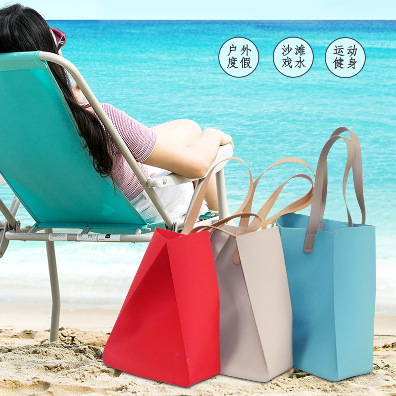 廣東廠家定制硅膠包網(wǎng)紅沙灘包手提包買菜包硅膠購物袋浴室收納包