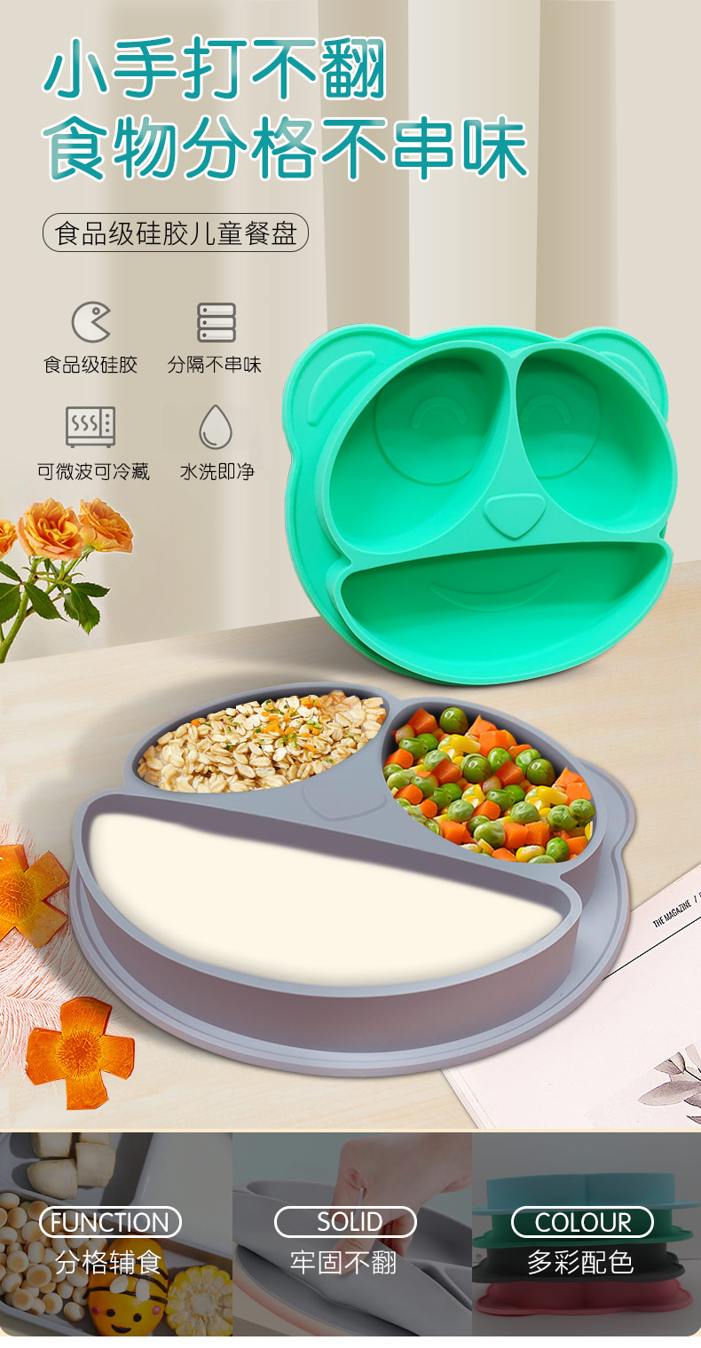 您的位置:首頁 > 產(chǎn)品中心 > 硅膠嬰童用品 > 硅膠碗 > 吸附式硅膠分格餐盤