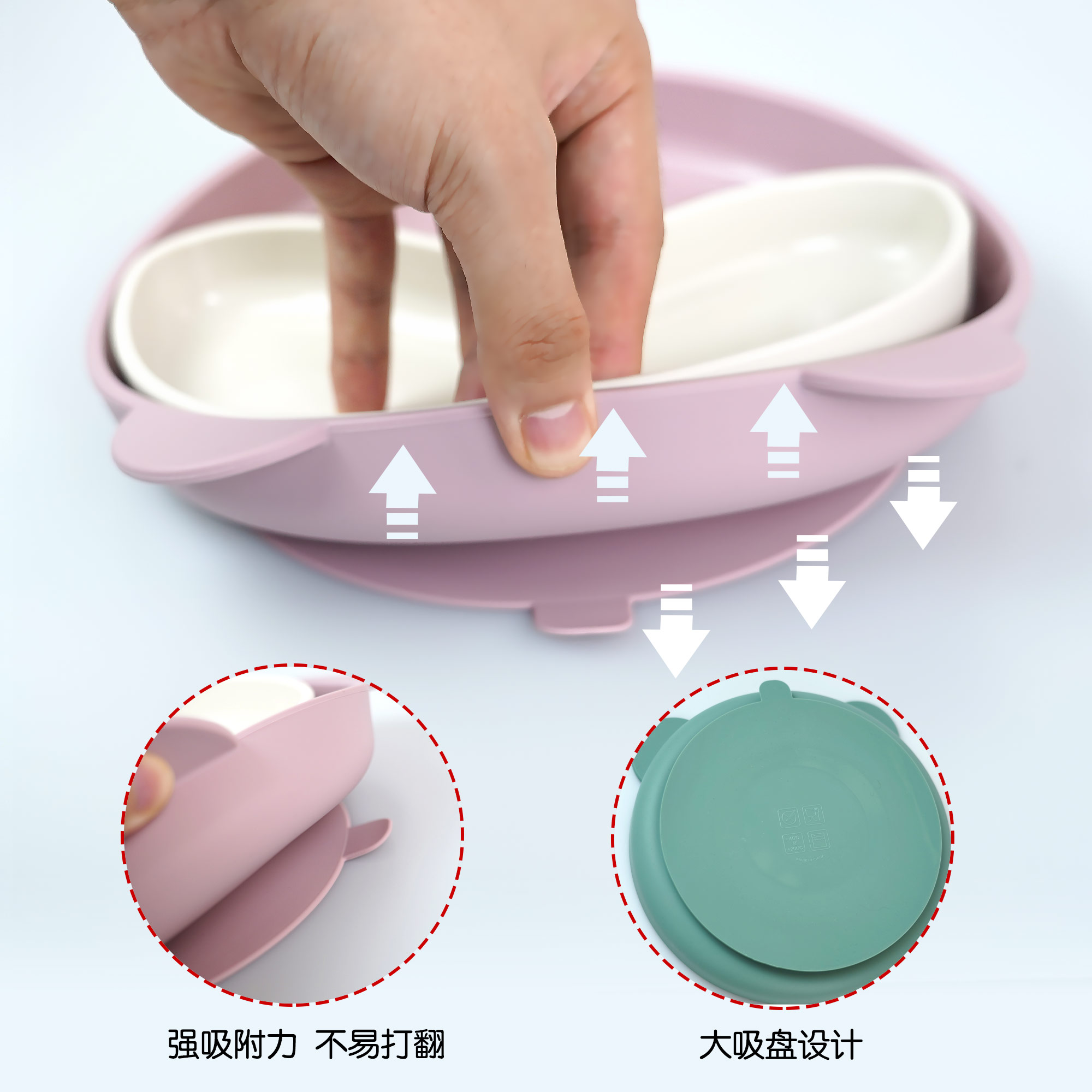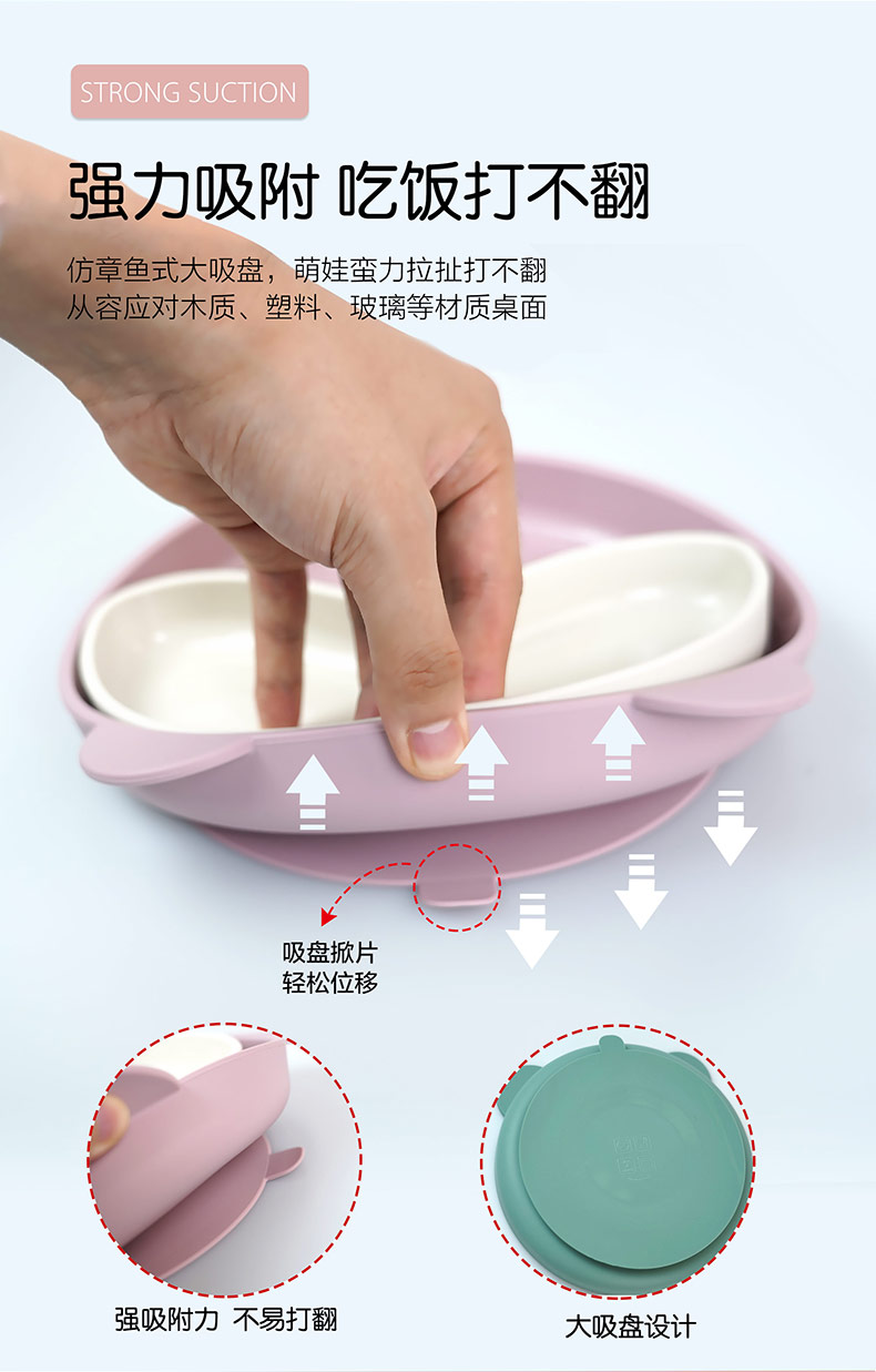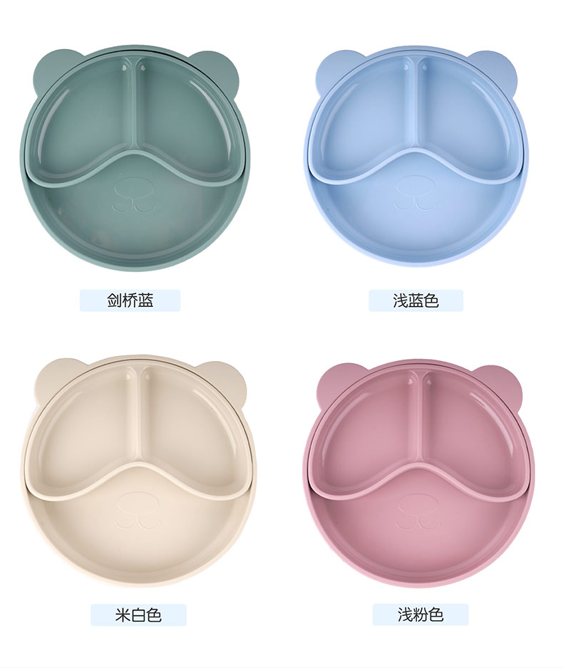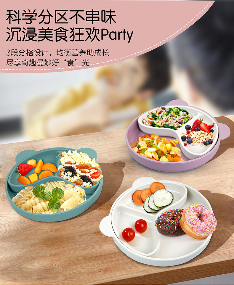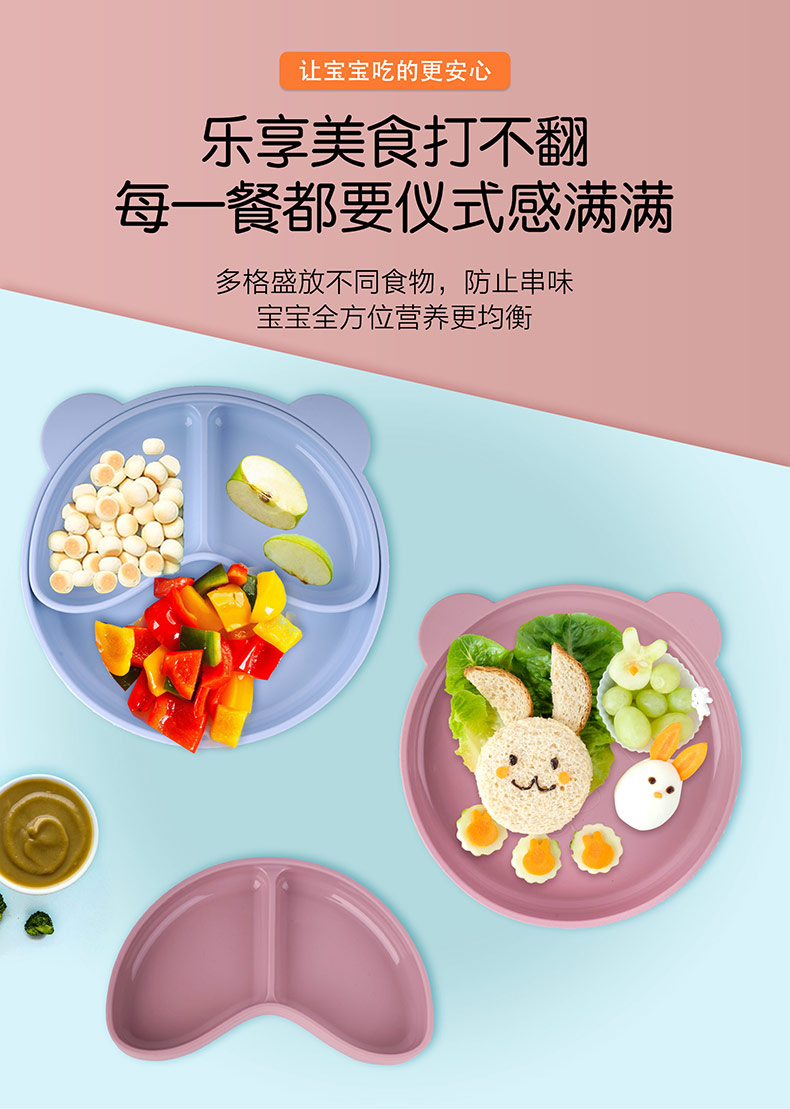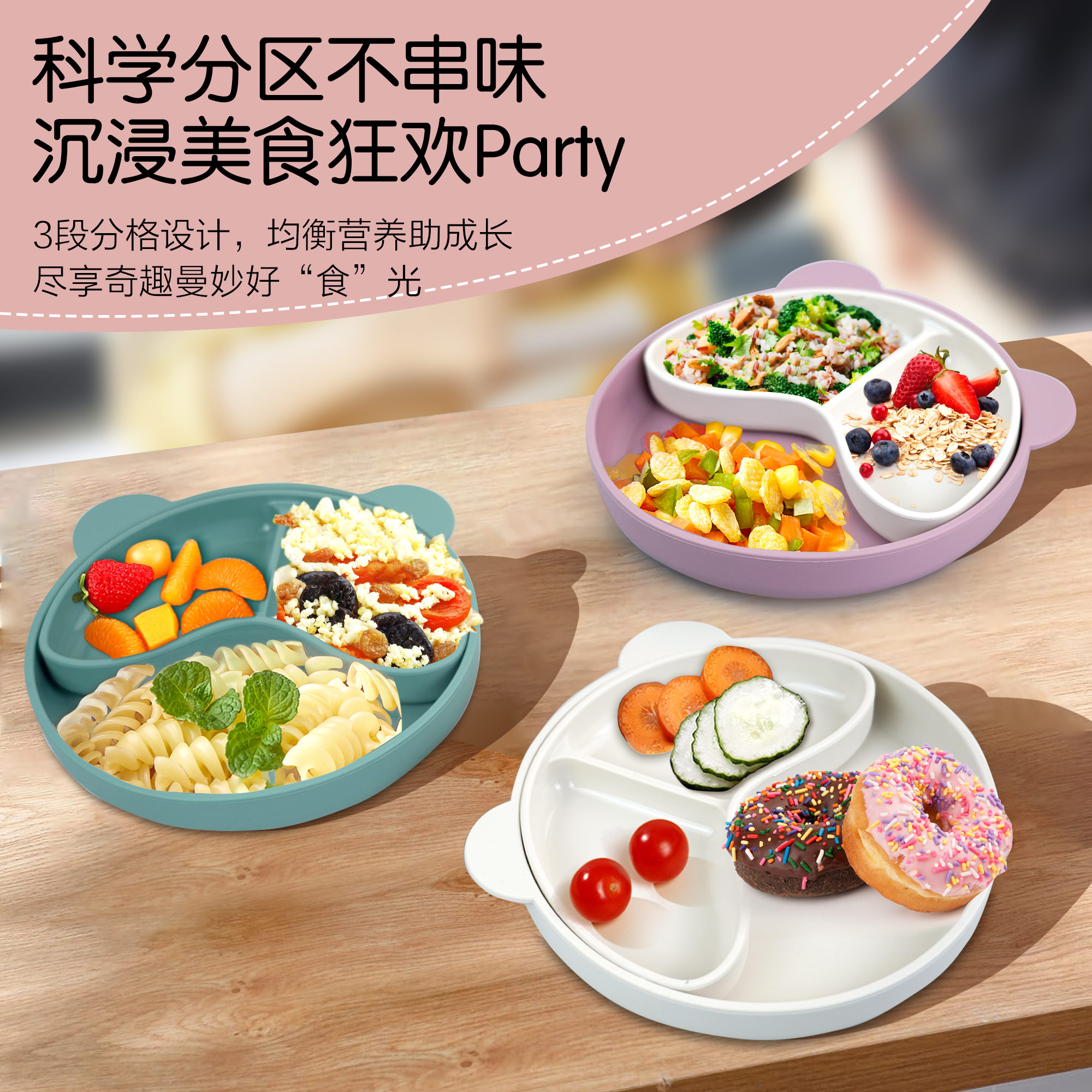 寶寶熱銷餐盤可拆分食品級(jí)硅膠分隔盤輔食吸盤三格兒童硅膠餐盤