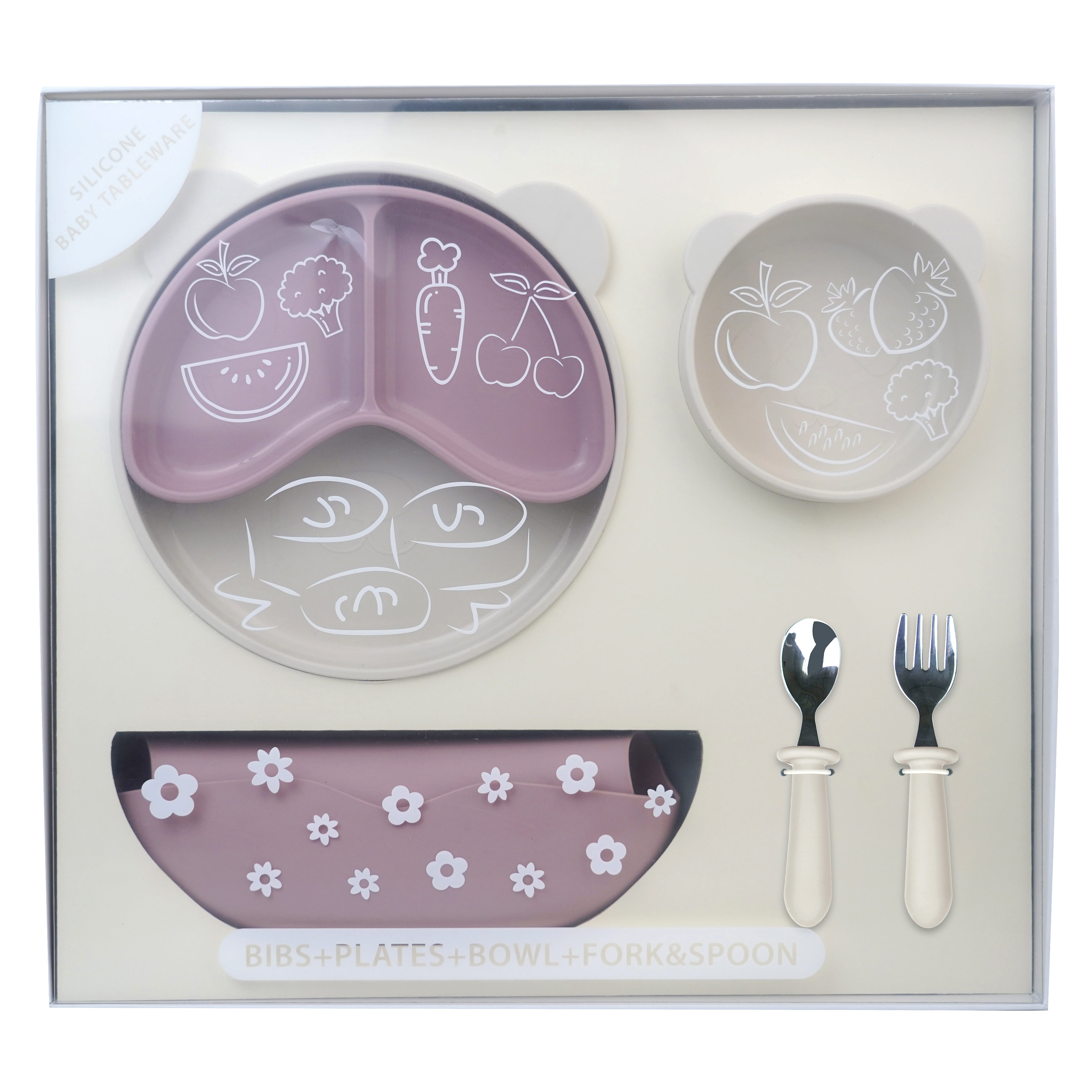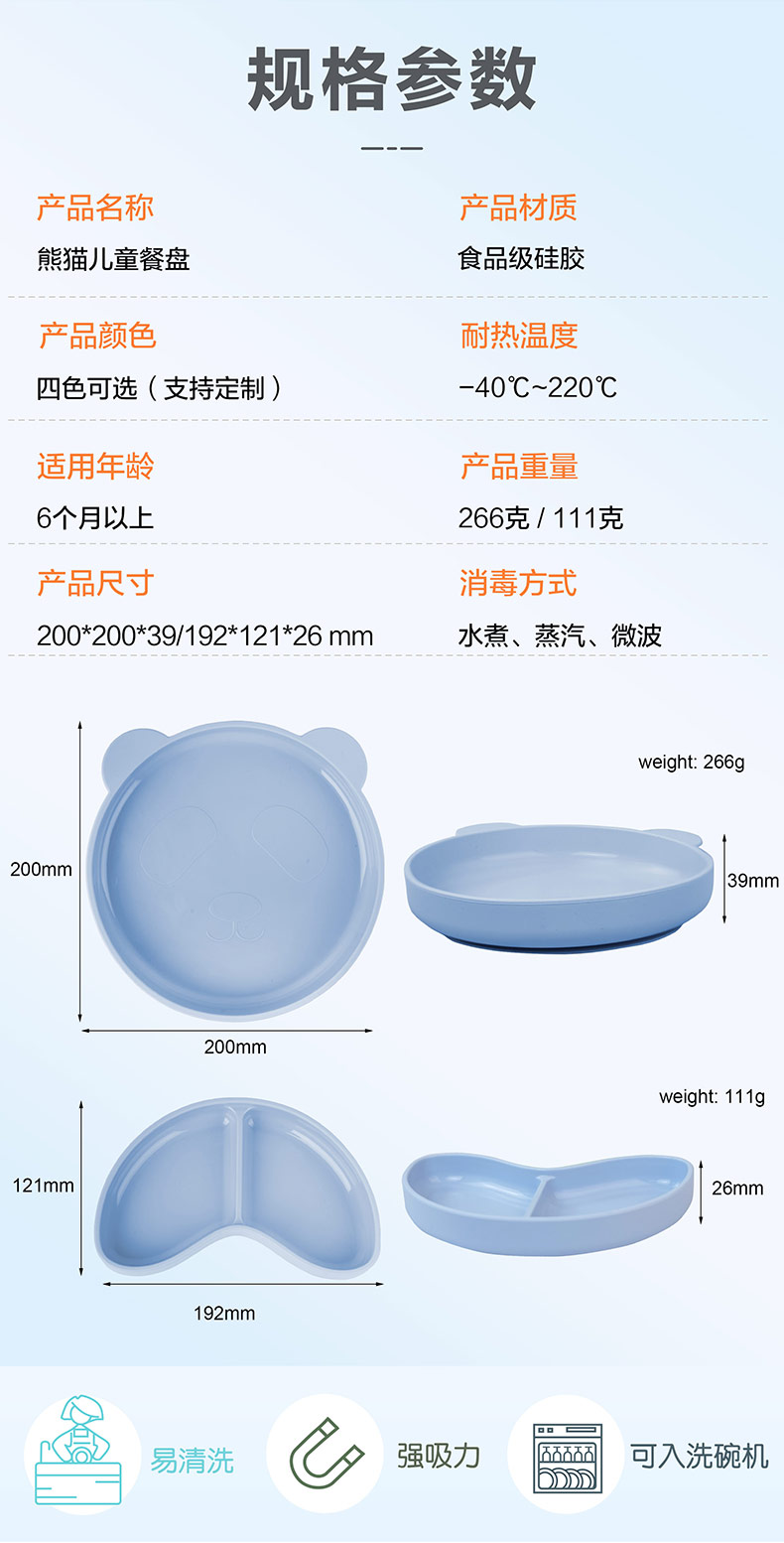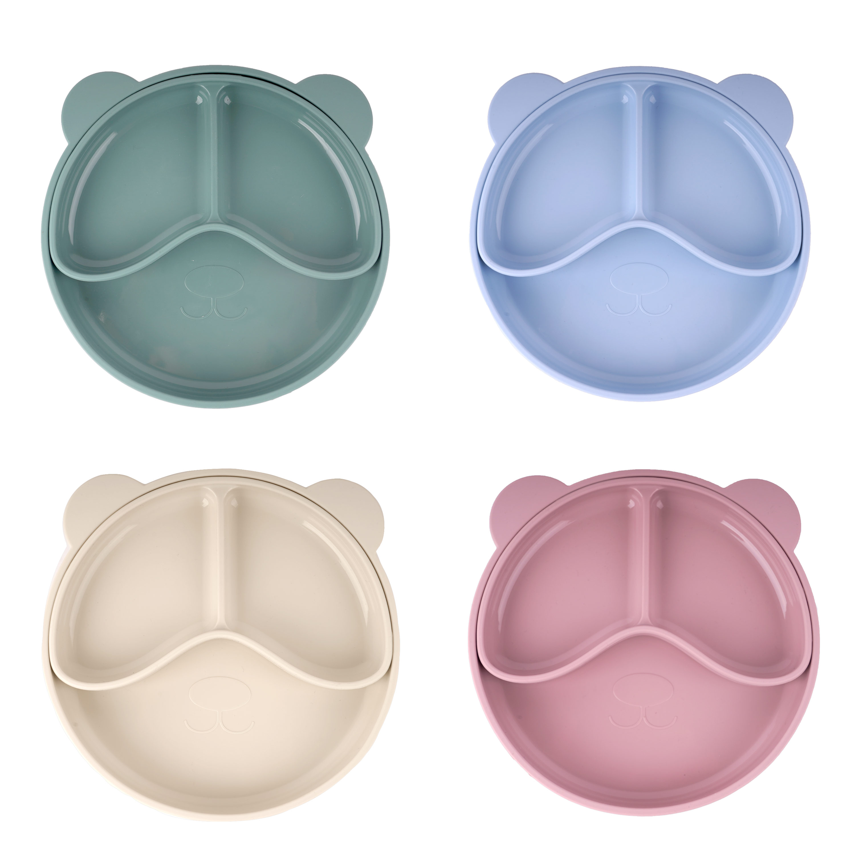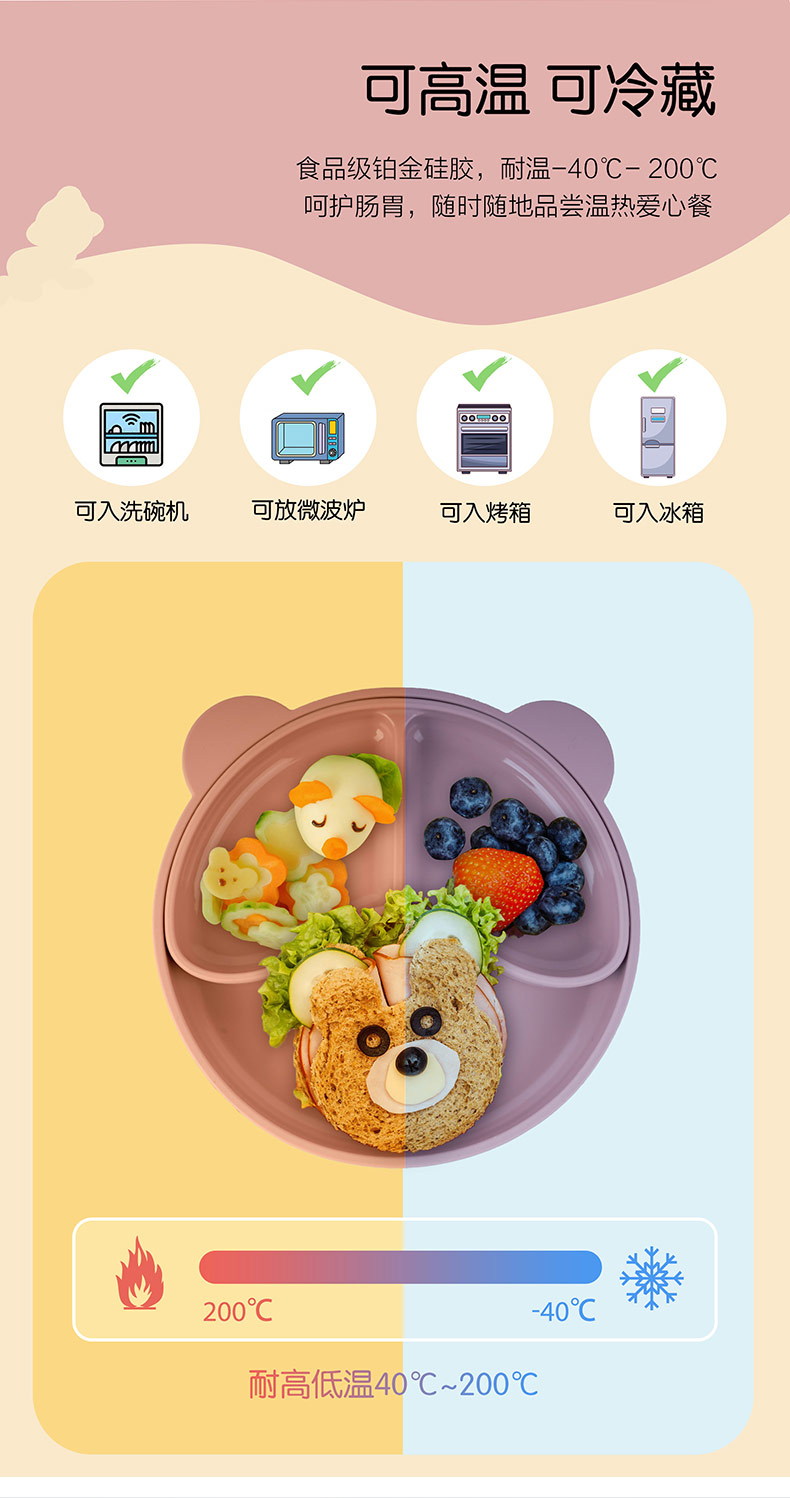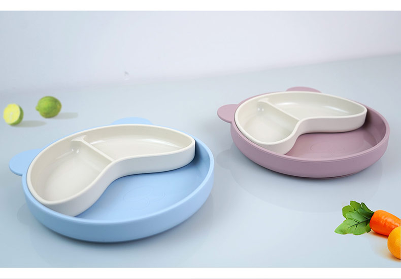 寶寶熱銷餐盤可拆分食品級(jí)硅膠分隔盤輔食吸盤三格兒童硅膠餐盤