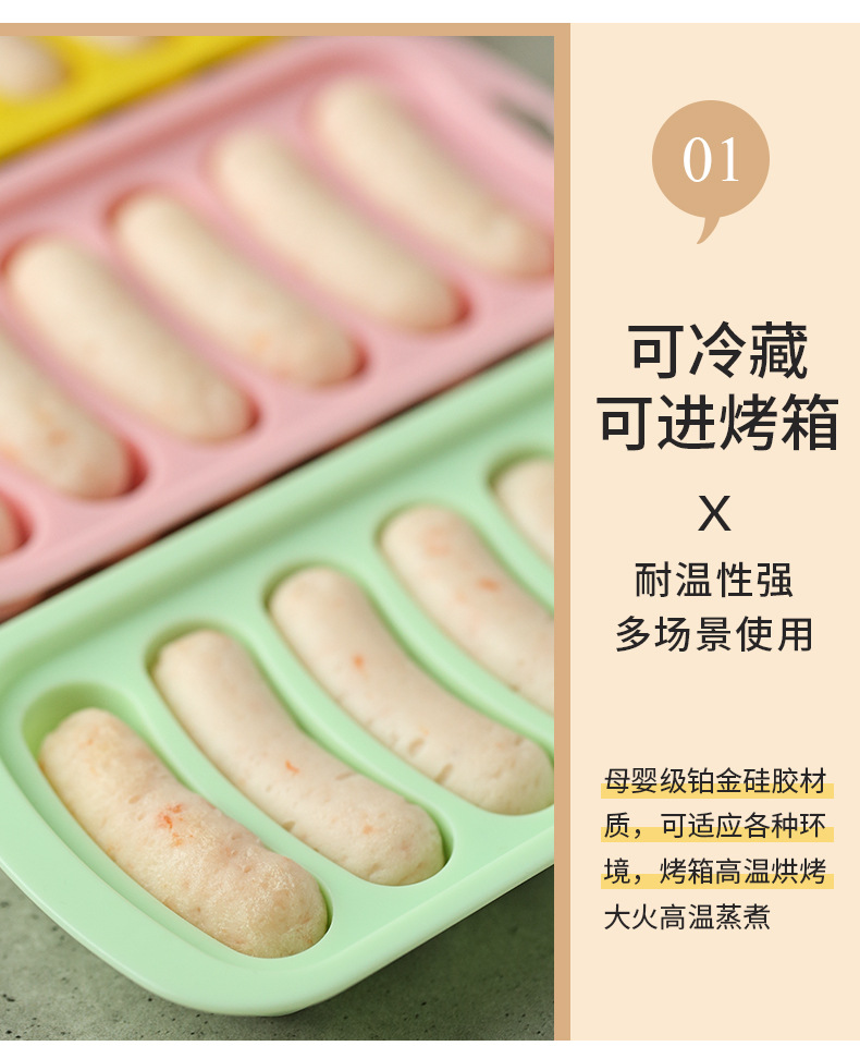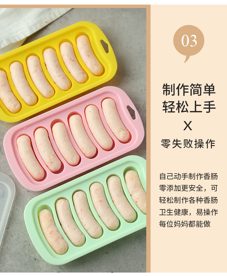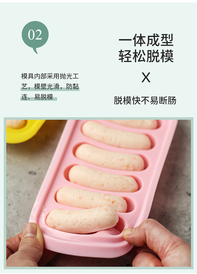 為了對付愛吃零食不吃正餐的寶寶,可以考慮買個(gè)硅膠香腸模具,記錄下配方以免下次做忘記了。豬肉+胡蘿卜+玉米+面粉+微量淀粉=糊狀→倒入模具大火燒開蒸十五分鐘。在飲食方面的應(yīng)用,一定要選擇食品級硅膠,固化后的硅膠模具具備著耐高溫性,不會(huì)對模具產(chǎn)生影響,也不會(huì)影響美食的味道;一定要選擇正規(guī)食品級硅膠,正規(guī)的硅膠廠,正規(guī)的硅膠模具制品!