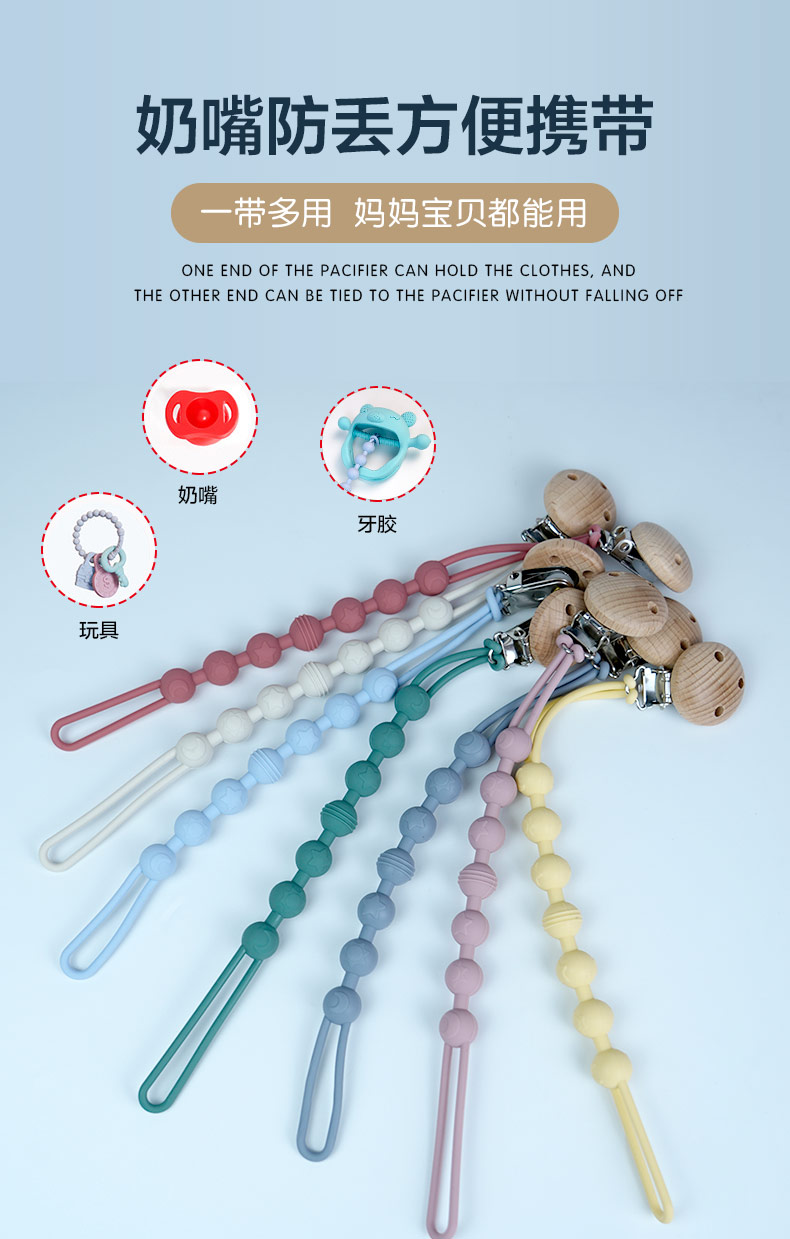 您的位置:首頁 > 產品中心 > 硅膠嬰童用品 > 嬰幼兒寶寶奶嘴牙膠防掉鏈繩食品級硅膠一體安撫奶嘴鏈