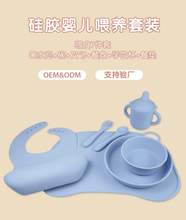 口水兜+碗+叉勺+餐盤+學(xué)飲杯+餐墊