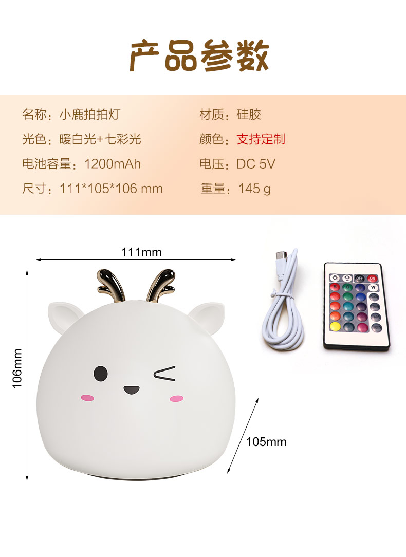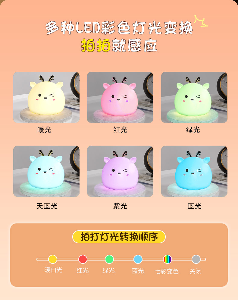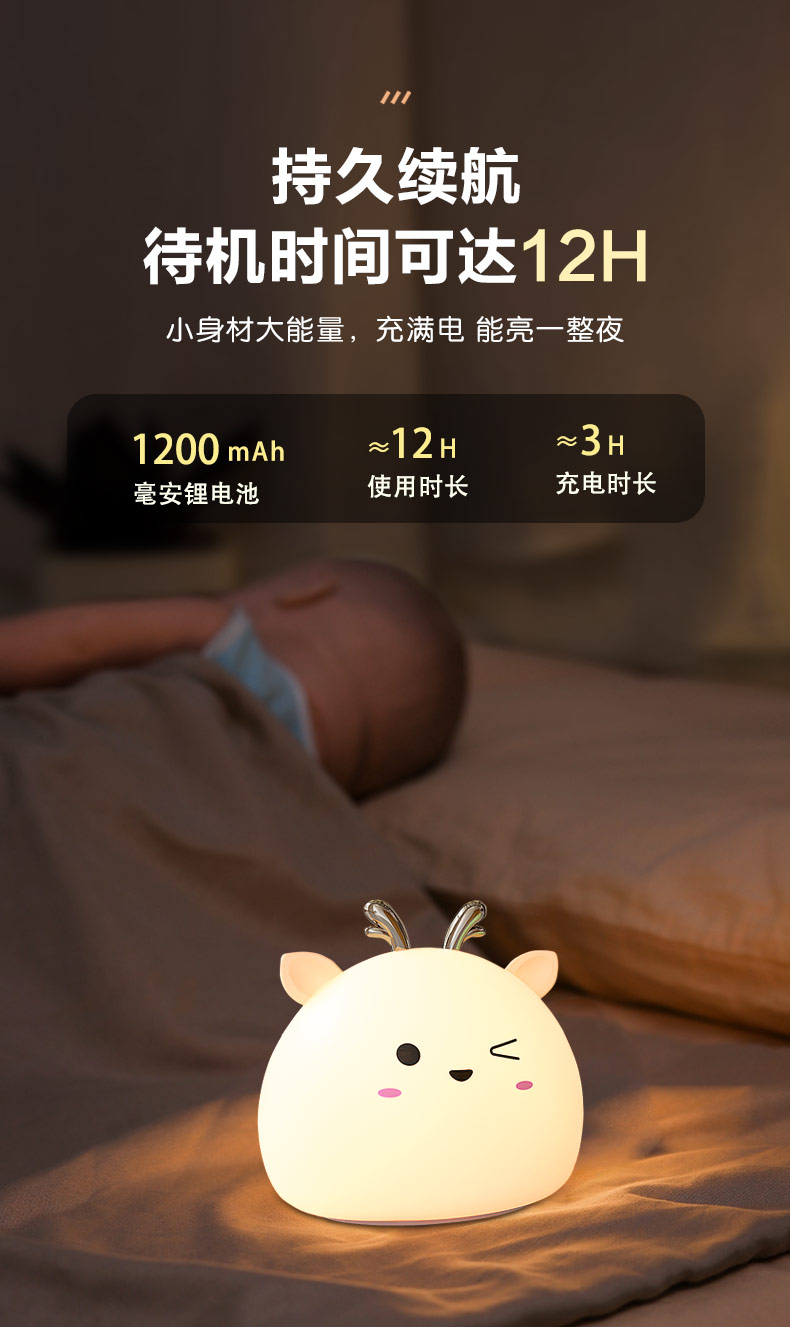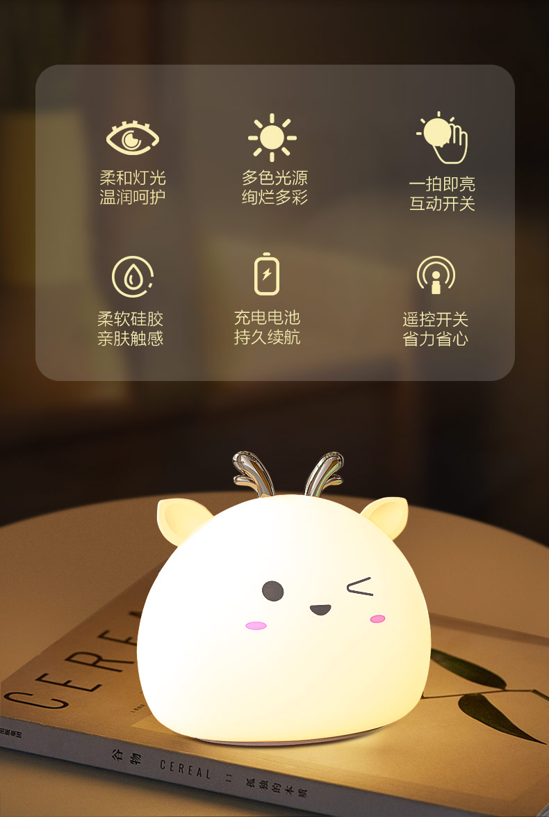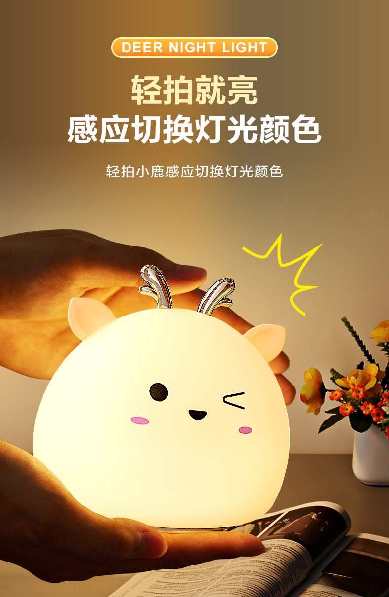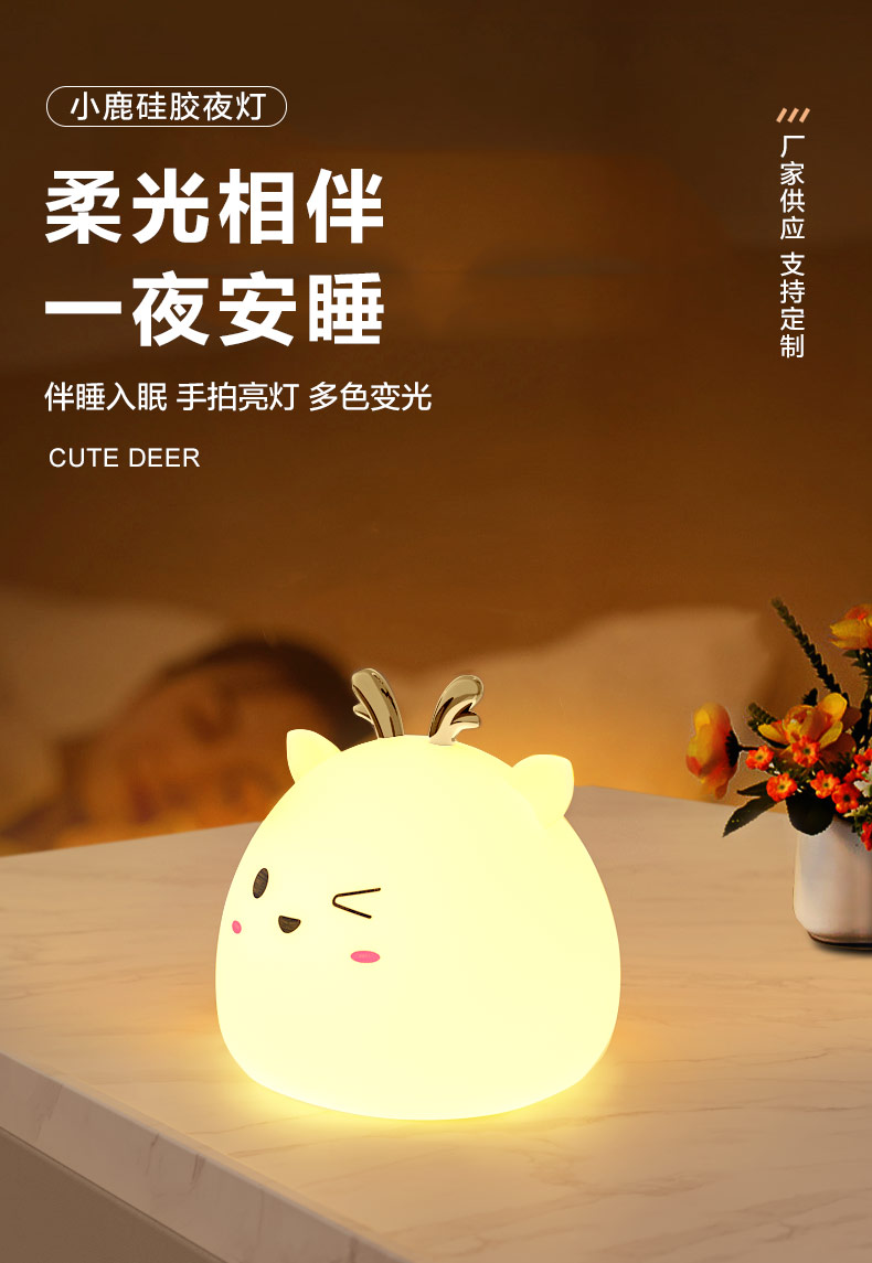 您的位置:首頁 > 產(chǎn)品中心 > 硅膠家居用品 > 拍拍燈 > 小鹿硅膠小夜燈 拍拍感應(yīng)燈喂奶起夜燈