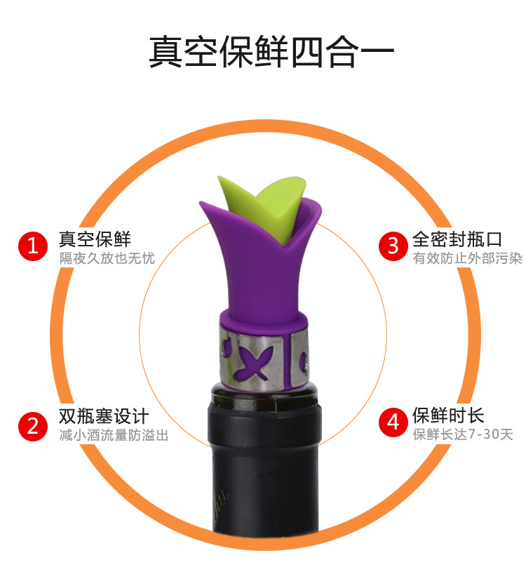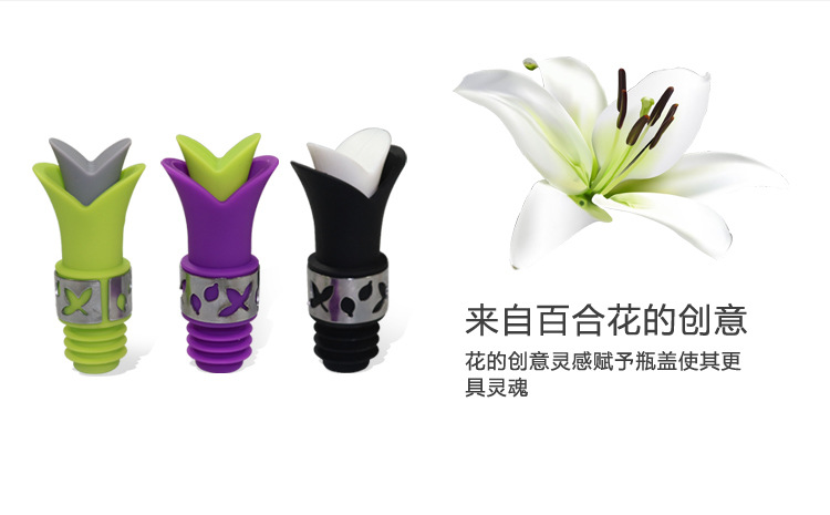 創(chuàng)意百合硅膠紅酒瓶保鮮塞定制廠家