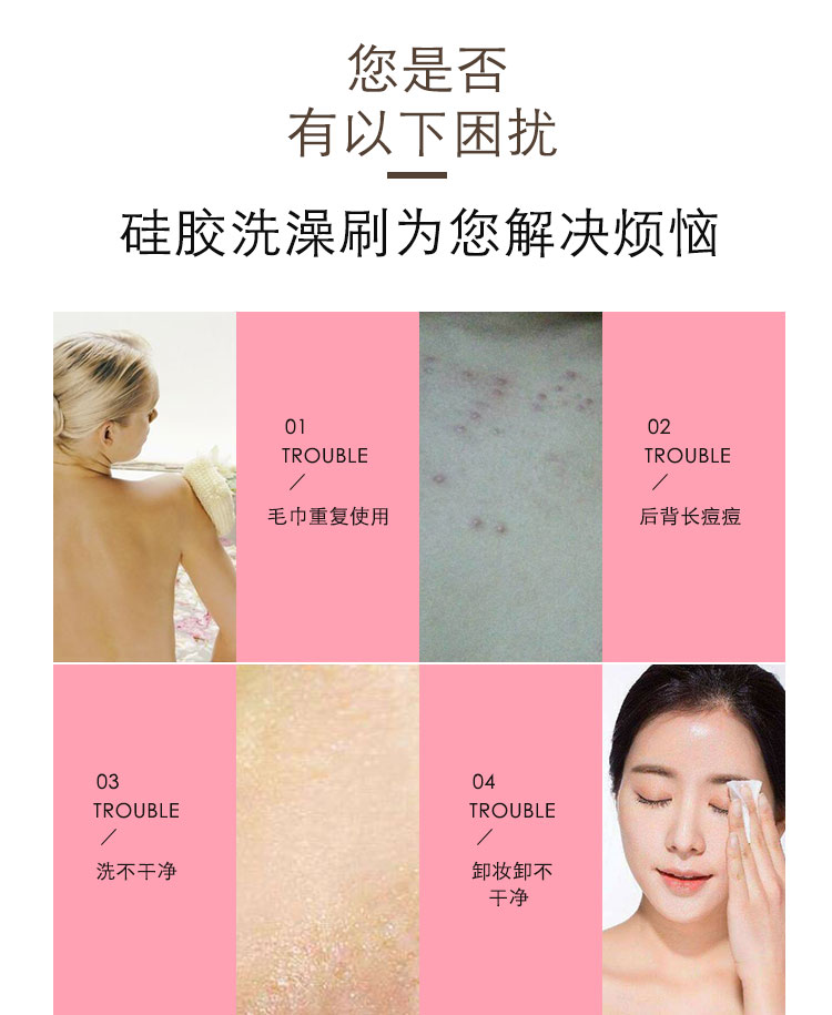 產(chǎn)品功能:洗澡時(shí)去除身體污垢,死皮,深層清潔與按摩