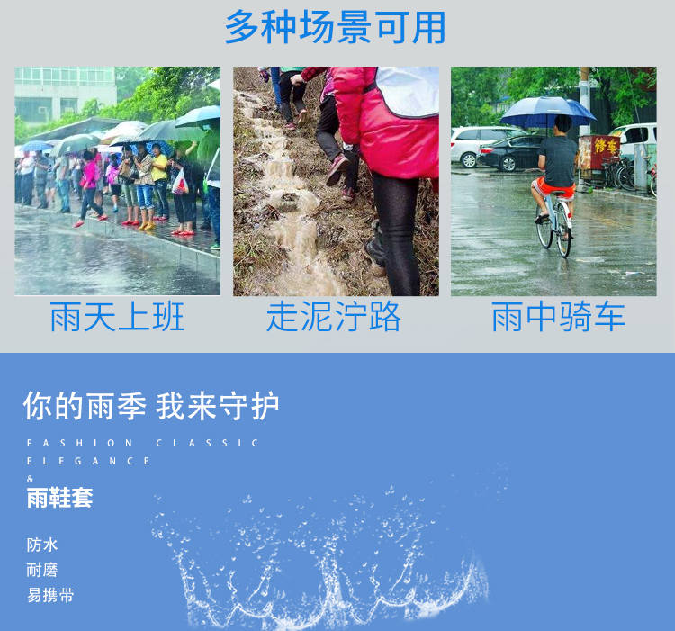 硅膠防水鞋套是為雨天出行設(shè)計(jì)的便利生活用品。采用硅膠材質(zhì),尺碼可選。有效隔絕雨水和地面積水打濕鞋子。近年來(lái)越來(lái)越受到消費(fèi)者歡迎。
