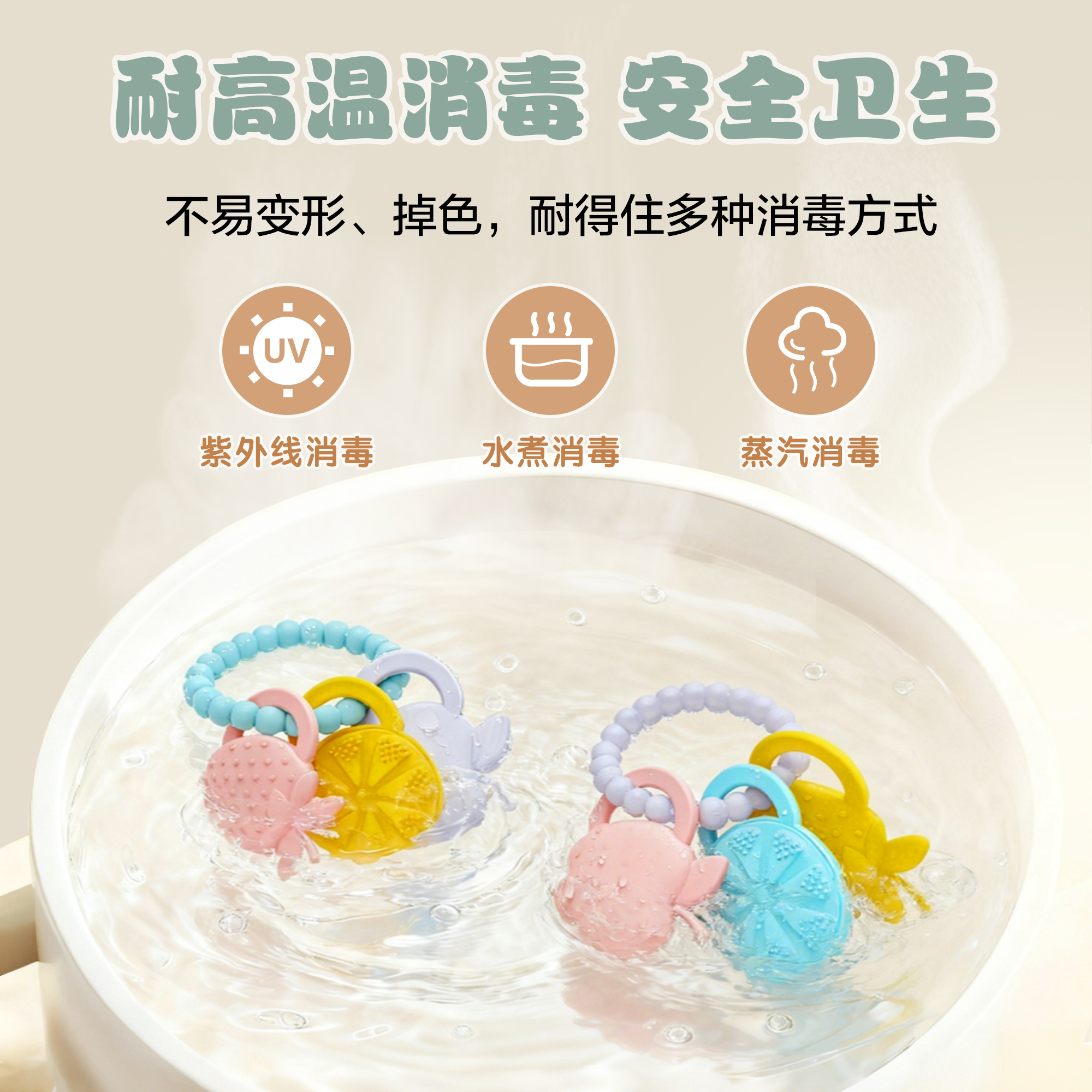 亞馬遜新生嬰兒硅膠牙膠防吃手圓環(huán)食品級可握咬玩具手環(huán)母嬰牙膠