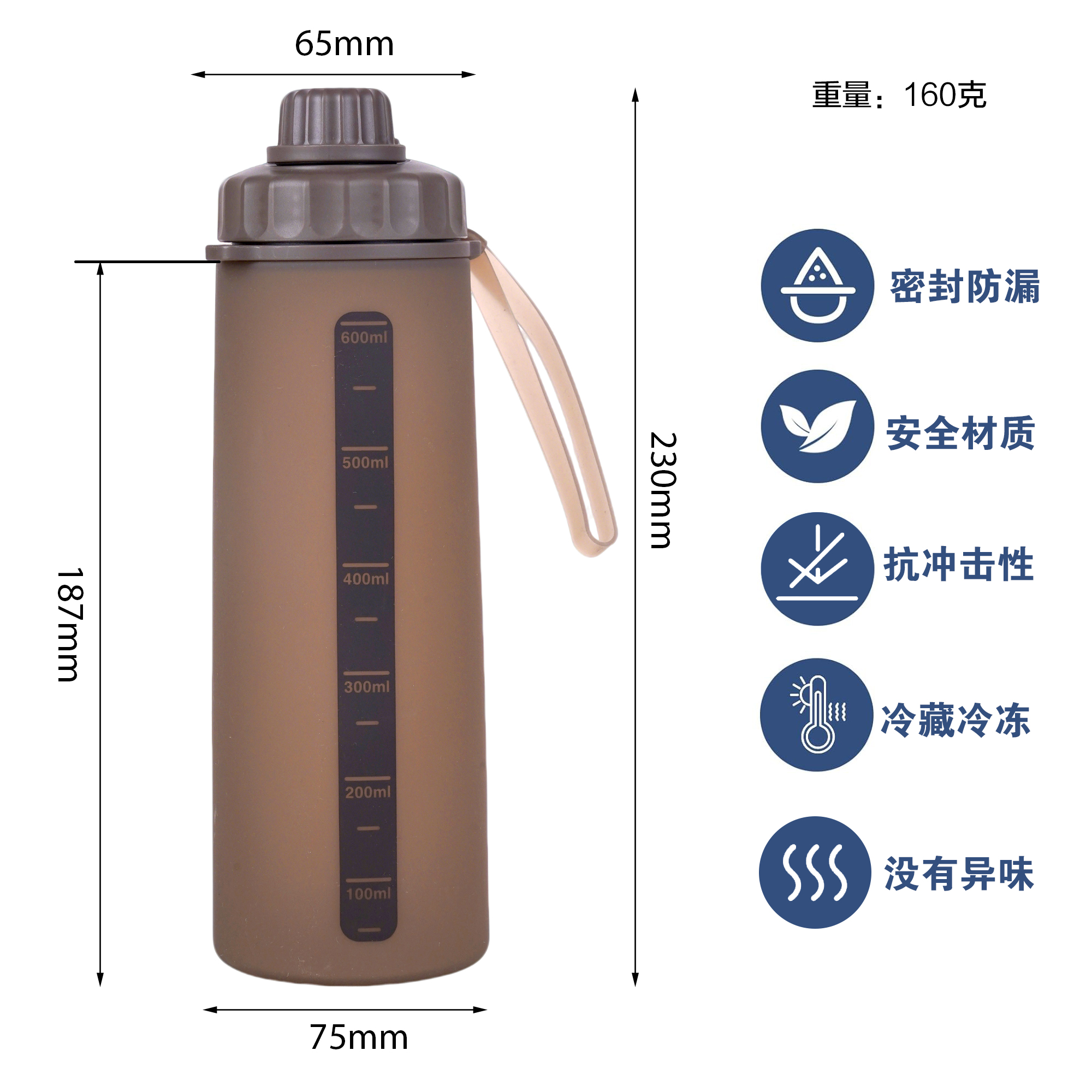 硅膠水瓶耐高溫水杯戶外運(yùn)動(dòng)騎行水壺600ML